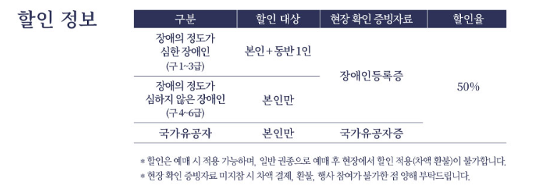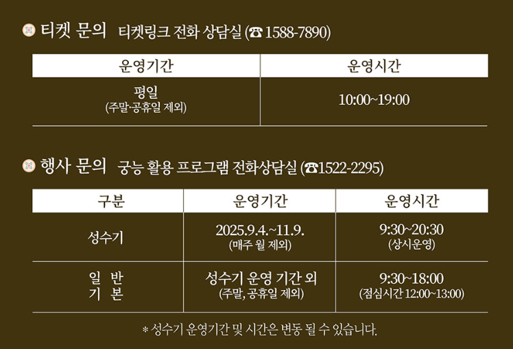 - 예매 채널: 한국문화재재단 공식 홈페이지 / 전용 예매 시스템