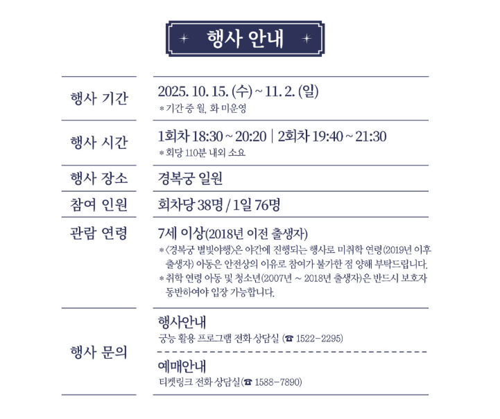 2025년 경복궁 별빛야행 하반기 일정 개요