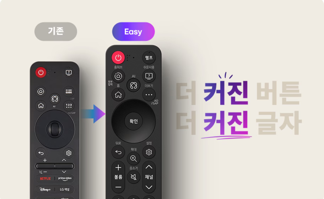 TV 사용에서 가장 중요한 것은 리모컨입니다. LG 이지티비는 리모컨부터 시니어 친화적으로 설계했습니다.