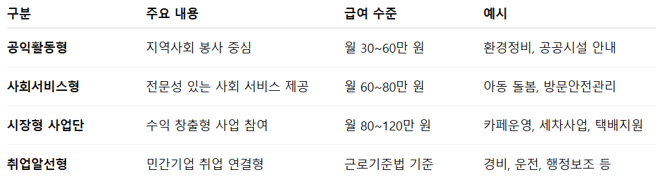 공익활동형의 경우 월 30만~60만 원, 사회서비스형은 80만 원 이상 지급됩니다.