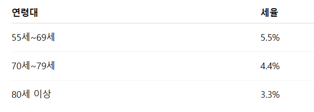 연령이 높을수록 낮은 세율이 적용됩니다.